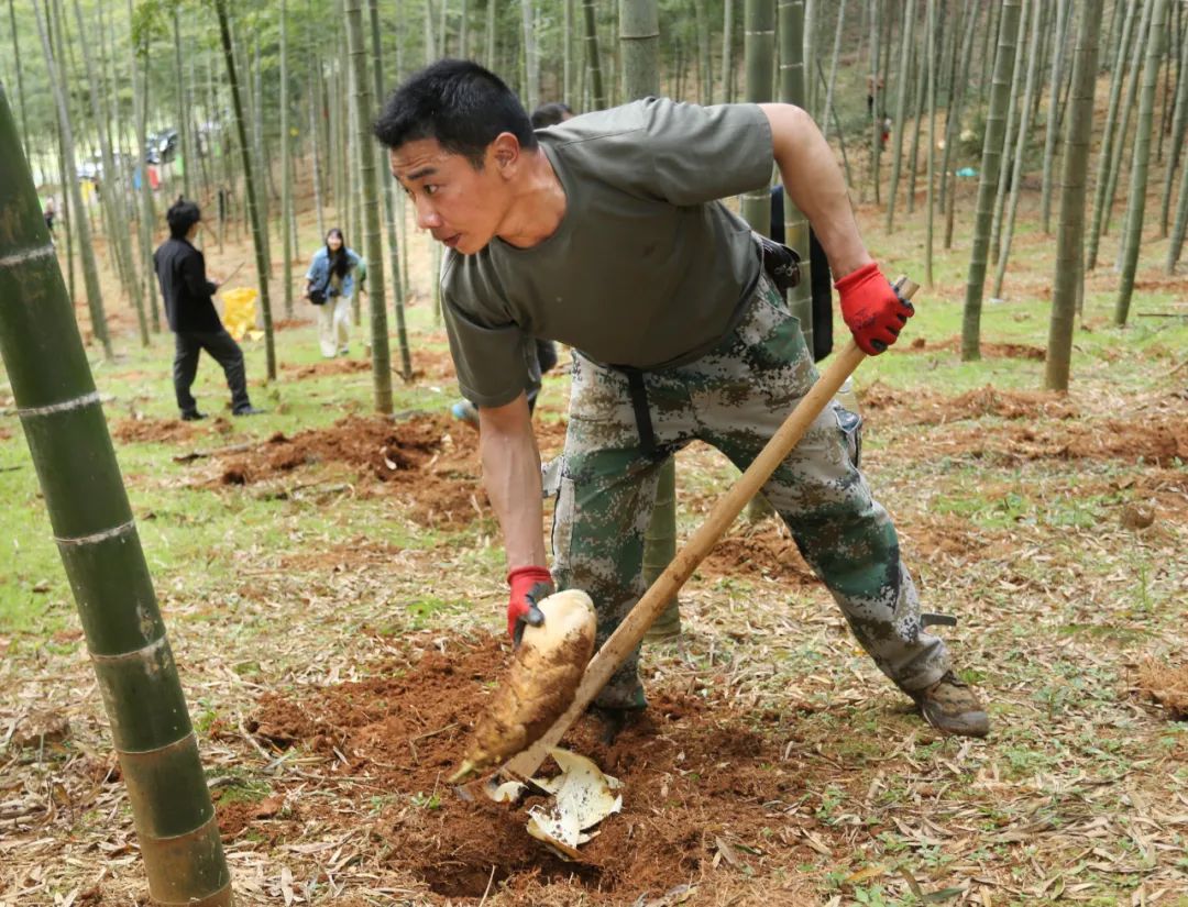 竹林青翠节节高,一根根破土而出的春笋长势喜人,一场火热的挖春笋大赛正在进行。现场,18个乡镇街道的挖笋能手们,正体验一场挖春笋的乐趣。