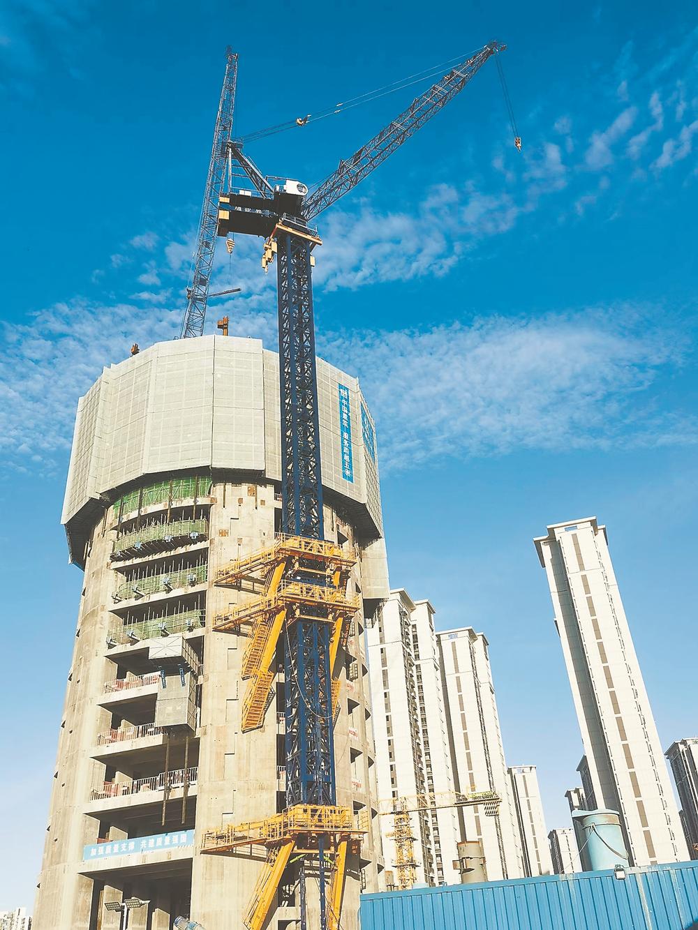 现场观摩活动中,此次发布的外挂式自爬升塔吊进行施工作业演示(如图)。这标志着该装备在厦门国际银行新总部大厦项目成功应用,并将为建筑行业现代化、数字化施工注入新动力。