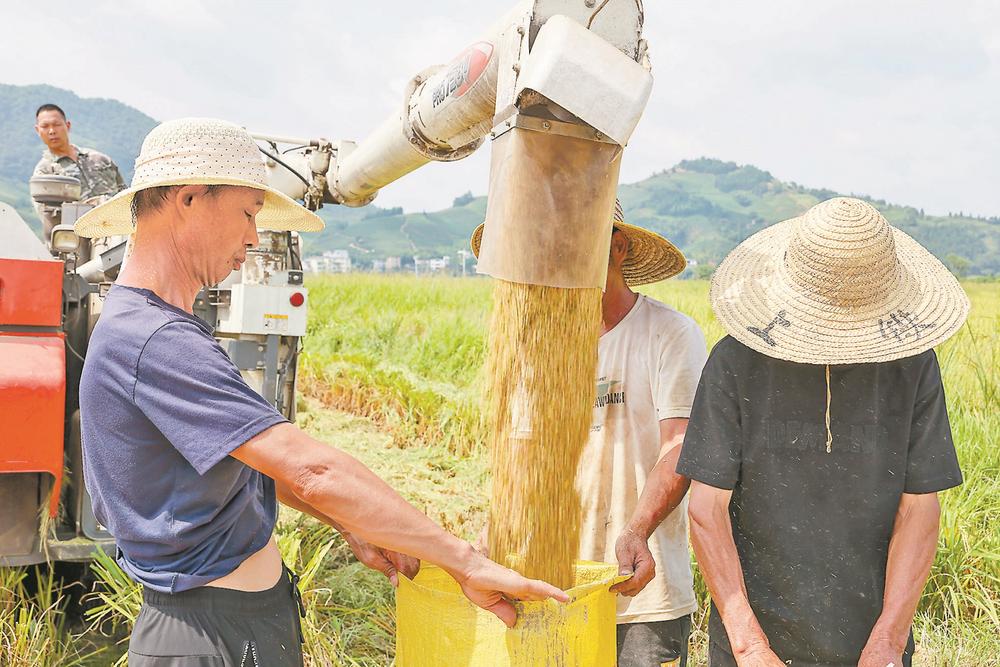 16日,武夷山市助民种植家庭农场农民在装卸早稻稻谷。邱汝泉 摄影报道