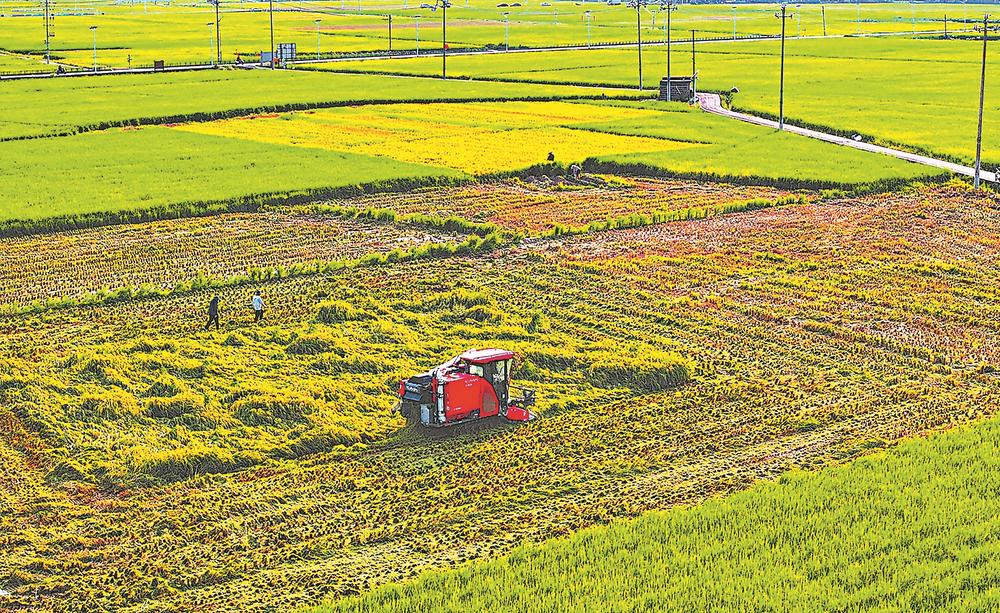 南安15.27万亩早稻陆续成熟,进入收割阶段。图为近日,溪美街道莲塘千亩水稻田在收割水稻。黄钊伟 庄树鸿 摄影报道