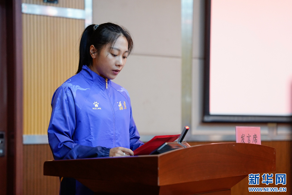 运动员代表、女子田径运动员葛曼棋作表态发言。新华网 蒋巧玲 摄