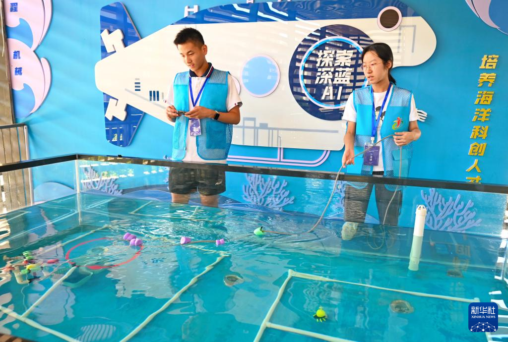 10月18日,参加2025年海鲈鱼国际青少年水下机器人福建选拔赛的选手在比赛中。新华社记者 林善传 摄