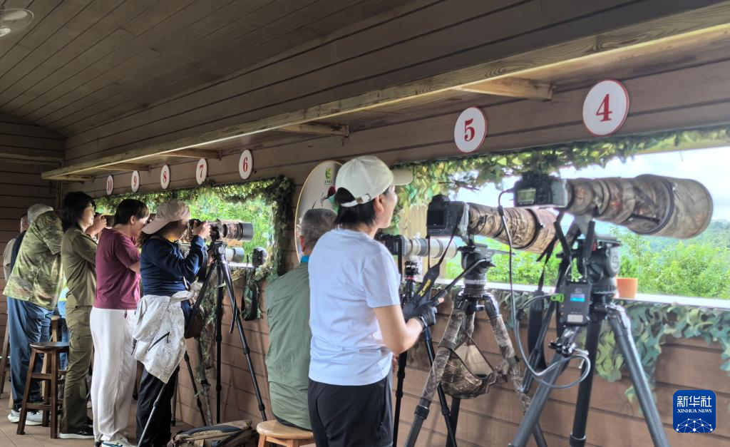 观鸟爱好者们在明溪县盖洋镇村头村观鸟点拍摄。新华社发