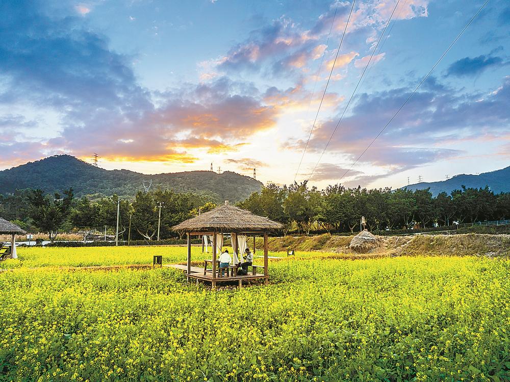 "初冬时节,在位于厦门市海沧区天竺山西门的“知稻稻田咖啡”农耕研学基地,大片金黄油菜花海开始绽放,在冬日里形成了一幅清新的田园画卷。"
