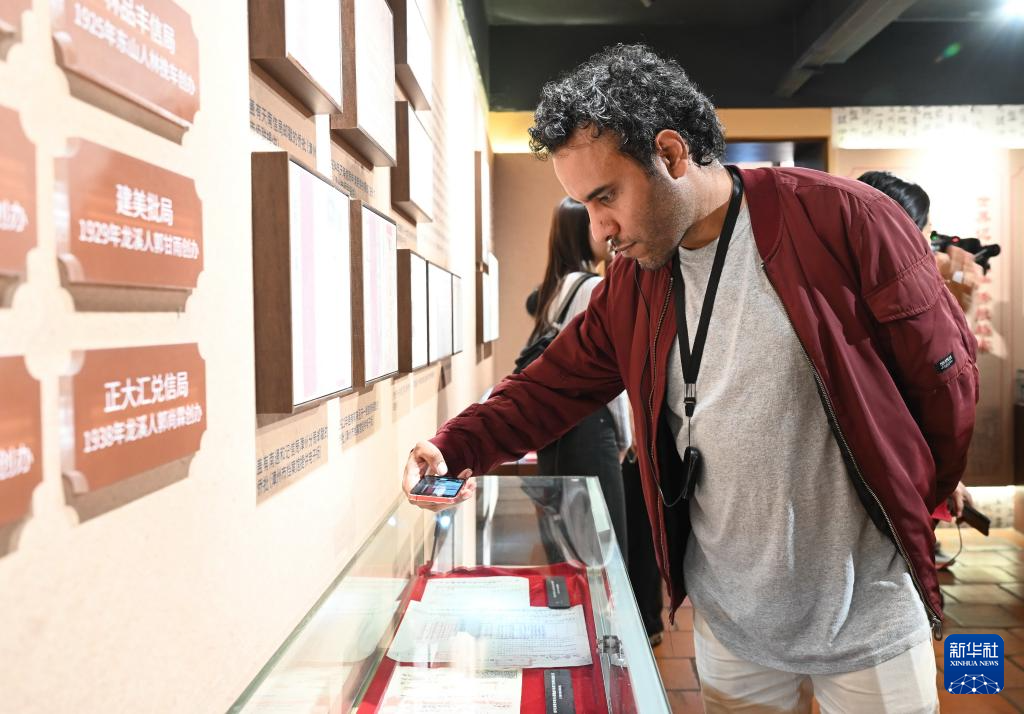 4月16日,阿拉伯艺术家在漳州古城侨批馆参观。新华社记者 林善传 摄