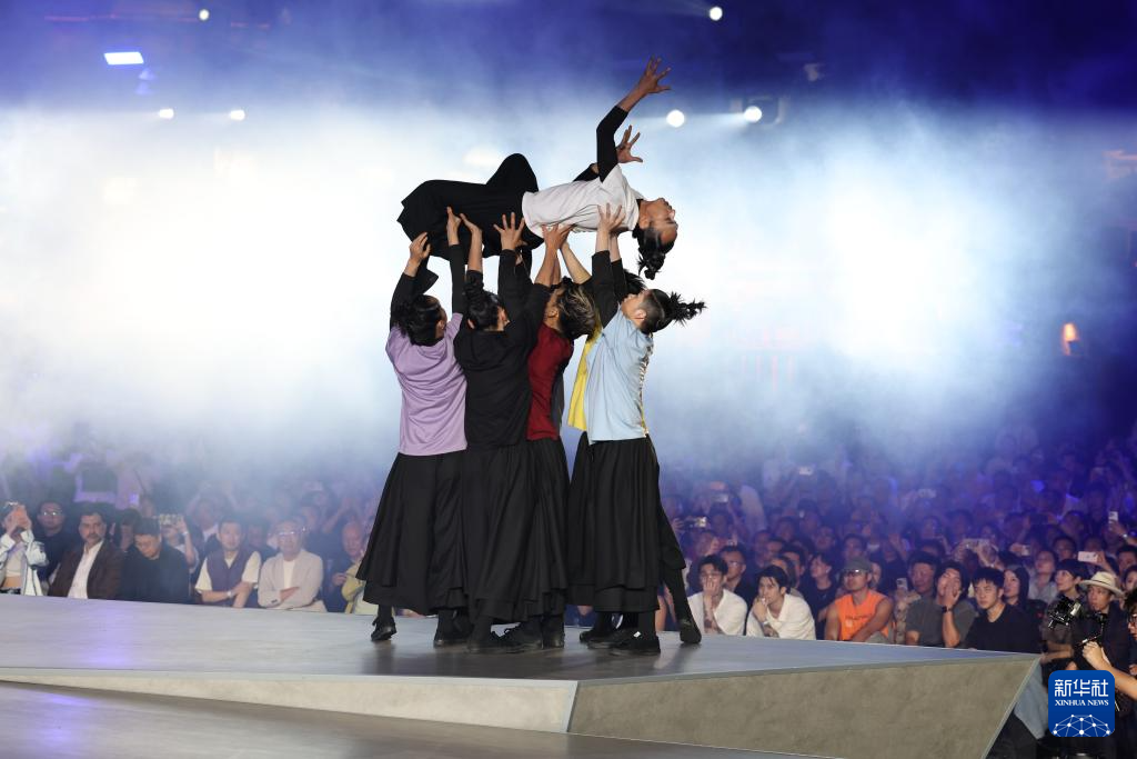 4月17日,在福建晋江梧林村举行的泉州时尚周首发秀场上,演员在表演舞蹈。新华社记者 姜克红 摄