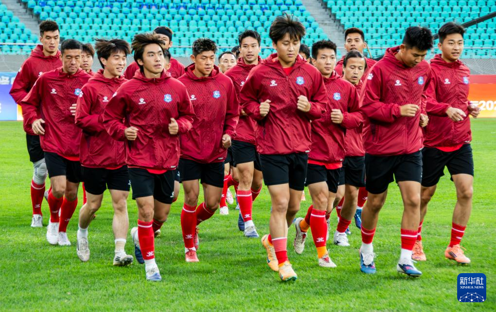4月18日,厦门队球员在赛前训练。新华社记者 魏培全 摄