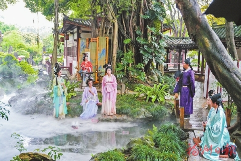 18日,在福州西湖公园,上百名市民游客现场沉浸式感受上巳雅韵。