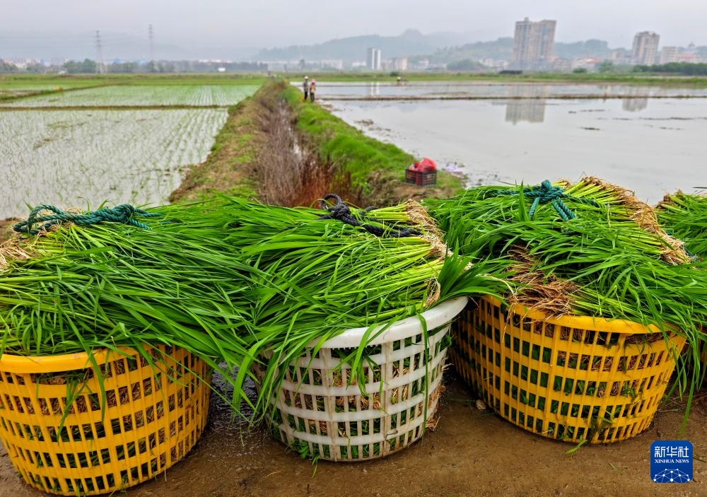 眼下正值春耕大忙时节,福建省福州市连江县广大粮农抢抓农时、不负春光,全面铺开早稻秧苗栽插作业,田野间呈现出一派生机盎然的春日春耕图景。