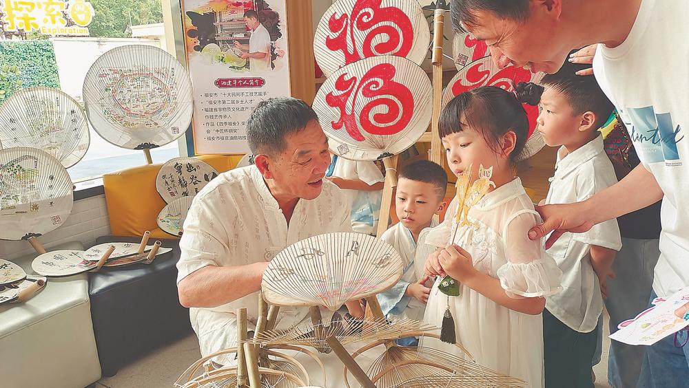 近日,省非物质文化遗产福安官埔油扇制作技艺传承人池建华,前往福安市启萌科技幼儿园讲解油扇制作技艺。池建华把油扇的历史、种类和制作方法,用玩游戏的方式与孩子们进行互动分享,让孩子们能够走近非遗,亲近传统文化。(记者 庄严 李广 摄影报道)