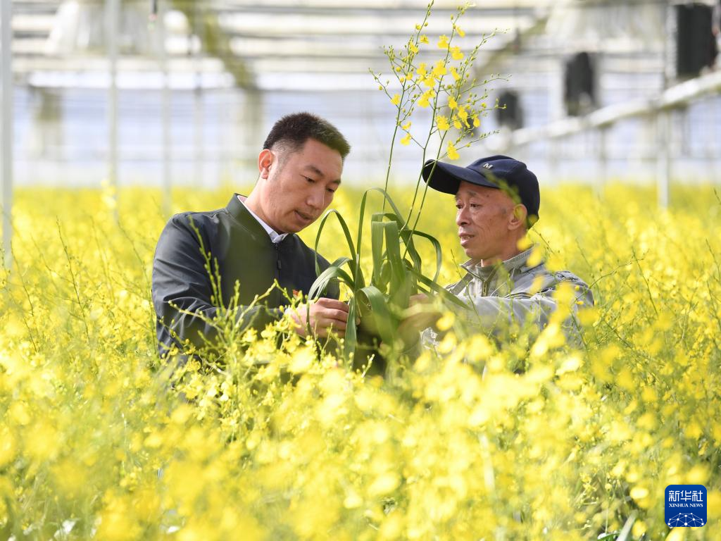 11月17日,在位于周宁县浦源镇的宁德向山兰园植物科技有限公司花卉大棚内,福建省林业科技特派员王李银(后)在指导工人种植大花蕙兰。新华社记者 姜克红 摄