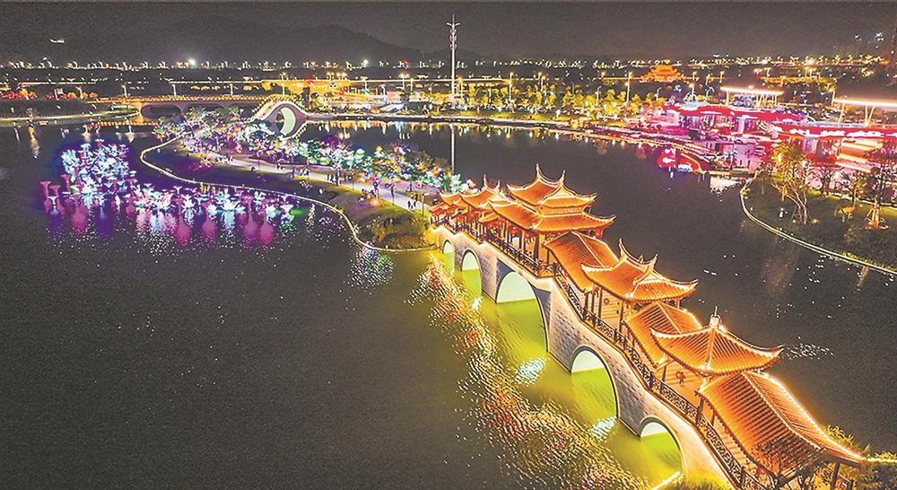 春节临近,漳州市芗城区西湖生态园龙年主题花灯点亮,造型丰富的花灯争艳斗彩,吸引众多市民前来赏灯打卡。(通讯员 郑文典 黄跃斌 谢威 摄影报道)