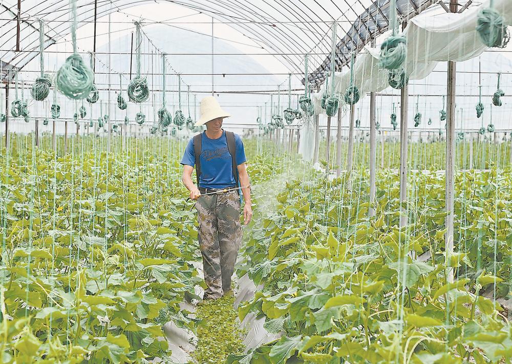 27日,在三明市沙县区高桥镇省级农民创业园的大棚里,当地村民忙着喷洒营养液,处处生机盎然。