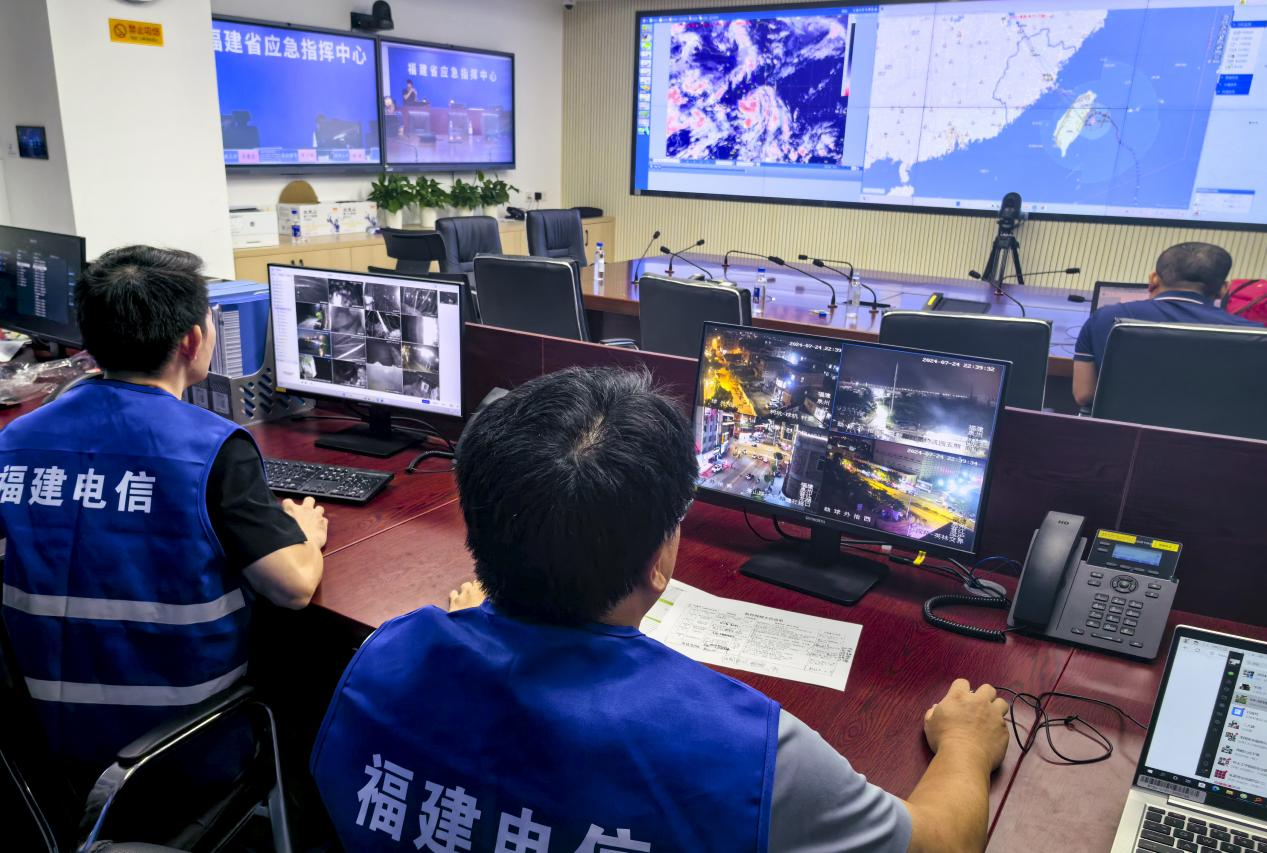 在智能云网调度运营中心,中国电信福建公司连续召开两次防台风工作保障视频调度会,深入研判台风“格美”的移动路径及可能受影响区域的险情,全面部署应急保障队伍调集、天通卫星电话拨测、应急保障车辆和应急油机储备前置部署、重要路由电路巡检、隐患排查整治等各项防汛抗台风工作任务。同时,压实各级责任,严格执行领导带班和24小时值班值守制度,加强网络运行情况的实时监控,完善应急预案,确保调度及时、指令畅通、响应到位。