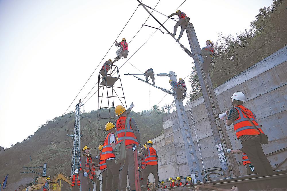 18日,工作人员正在进行改建线路开通前的施工。步杨星 摄