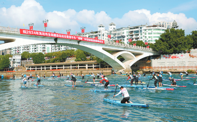 漫江碧透,百舸争流。11月24日,2024年龙岩市全民健身运动会暨漳平市“德耀”杯桨板邀请赛在漳平九龙江城区段火热开赛。
