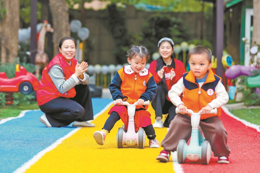 近年来,鼓楼区积极推动公办幼儿园、普惠性民办幼儿园、社会力量和社区协同兴办托幼教育,通过落实落细规划配套、普惠服务价格、财税金融支持等扶持政策,促进托幼一体化改革发展,在有条件的幼儿园提供3岁以下幼儿免费照护服务,助力解决社区居民“带娃难”问题。(谢贵明 摄影报道)