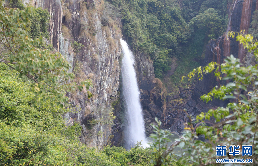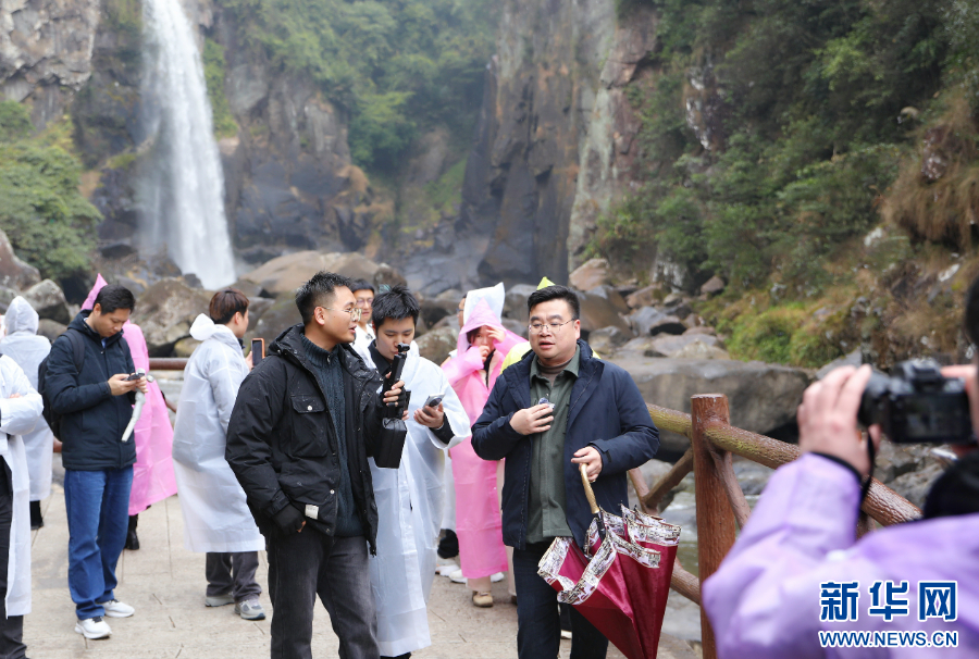 主播们在瀑布下直播。 新华网发(主办方供图)