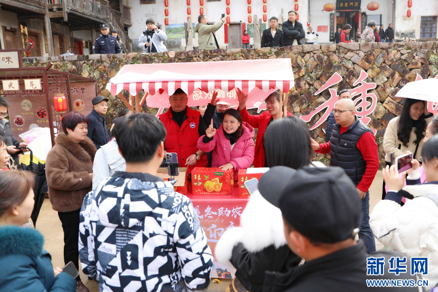 在天马村“暖冬助农 古厝迎新”市集,主播们进行农产品直播带货。 新华网发(主办方供图)