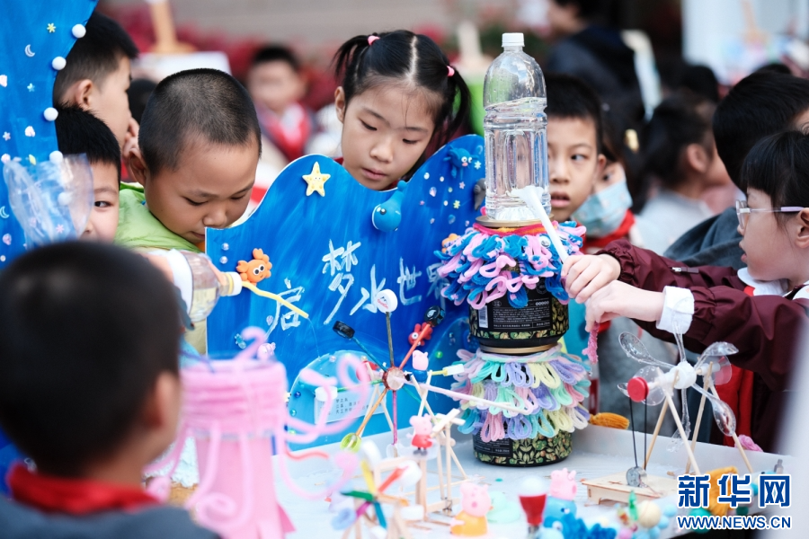 拓展科学教育内容、推进跨学科融合是福州市鼓楼第二中心小学的重要实践内容。图为二年级学生在演示自主设计制作的水车。新华网发(福州市鼓楼第二中心小学供图)