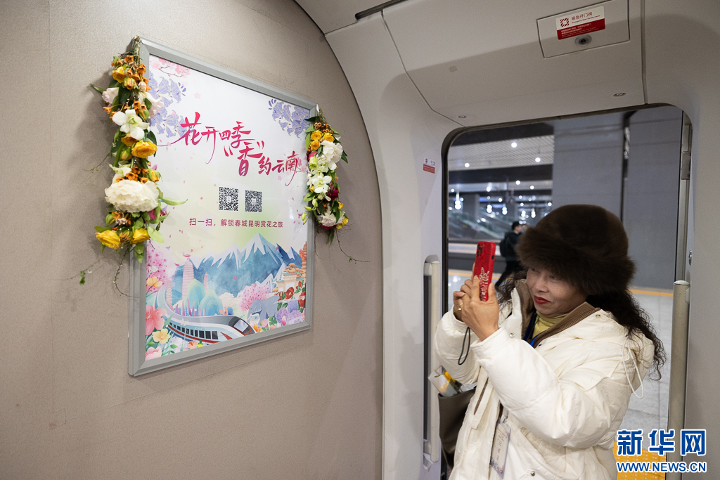 新华网昆明1月26日电(罗春明 刘东)1月26日9时49分,昆明至厦门G1752次赏花之旅列车缓缓驶离昆明南站,标志着昆明往返厦门赏花之旅列车正式开行。