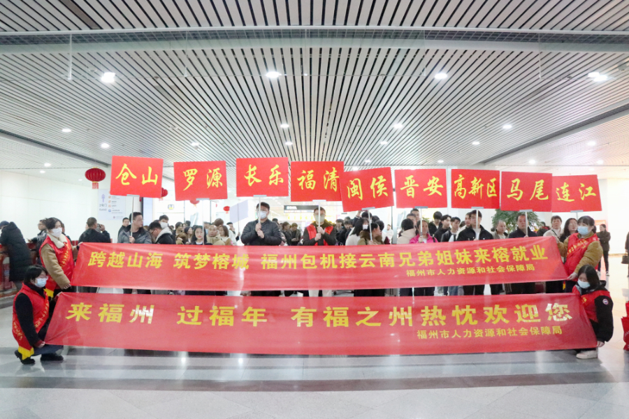 据了解,福州市人力资源和社会保障局联合福建省劳动就业服务局,从2月2日(正月初五)起,从昆明、贵阳、固原、定西、郴州等5个方向,安排4架次专机和1趟专列12车次包车,“点对点”包机包列包车输转省外劳务协作基地务工人员返岗就业,为奋力实现一季度“开门稳”“开门红”提供人力资源要素保障。