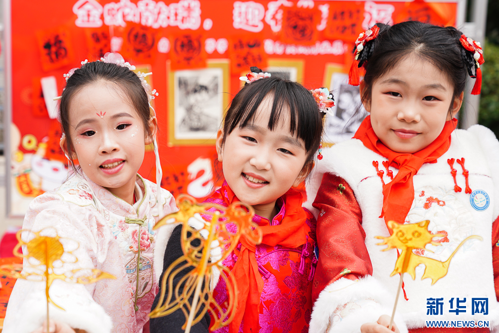 福建中小学生陆续返校上课。开学第一天,各地学校纷纷举办特色活动,为新学期注入满满的仪式感。2月13日,在福州市江南水都小学,主题为“非遗迎春 古韵传承 ”的校园庙会上,孩子们一起舞绸、舞狮,剪窗花、写福字、印年画,玩投壶……丰富多彩的“非遗文化大餐”,为孩子们开启新的校园生活。