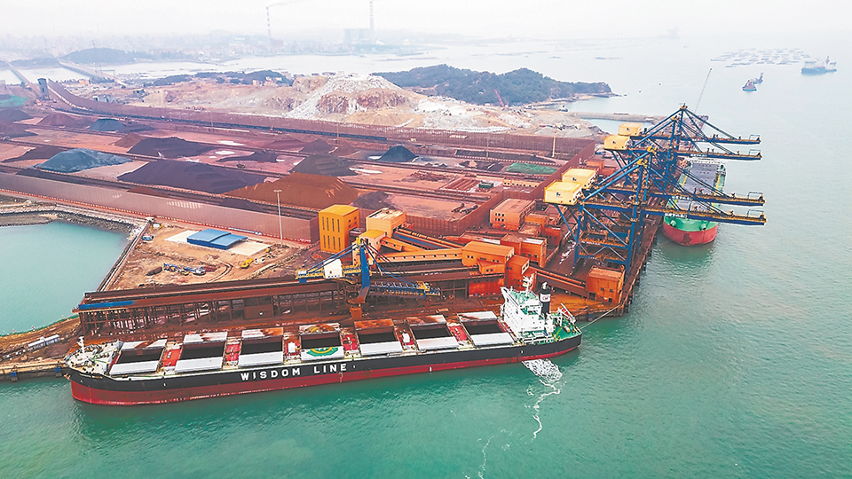 14日,莆田市东吴港区罗屿作业区10号泊位,一艘巴拿马籍“紫罗兰”轮正在抓紧装载铁矿,准备运往印度尼西亚。