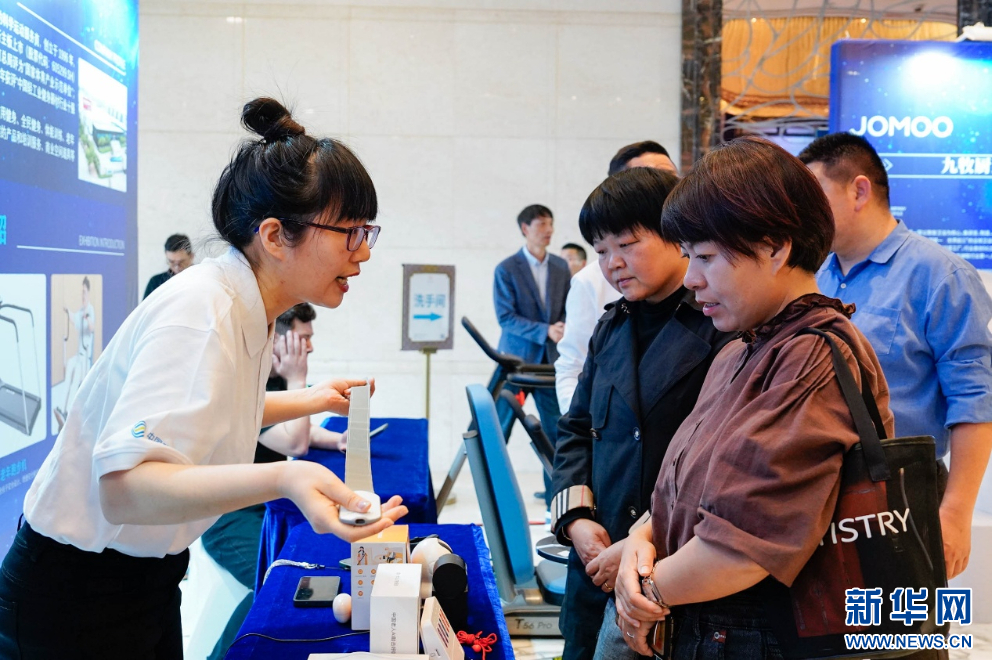 客商在展位前了解适老化产品。新华网 蒋巧玲 摄