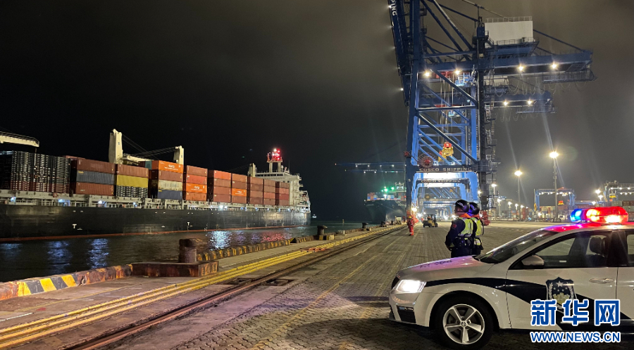 民警在码头进行监护。新华网发(陈铭嘉 摄)
