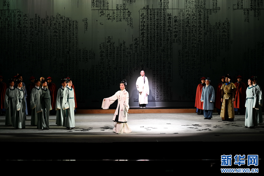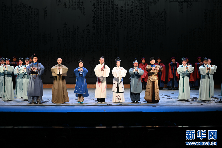 3月29日,大型历史题材闽剧《画网巾先生》演出现场。新华社记者 林善传 摄