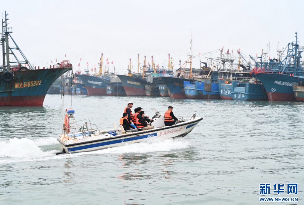 5月1日,连江县综合行政执法二大队二中队执法人员加强在港渔船执法巡查。新华社记者 林善传 摄