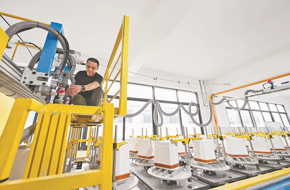 近年来,德化县积极推动陶瓷产业转型升级,鼓励企业加大技术创新投入,提高生产效率和产品质量。通过引入先进的生产设备和技术,德化县的陶瓷企业正在不断提升自身竞争力,为产业的持续发展注入新动力。图为工人在调试生产线设备。(记者 游庆辉 通讯员 许华森 摄影报道)