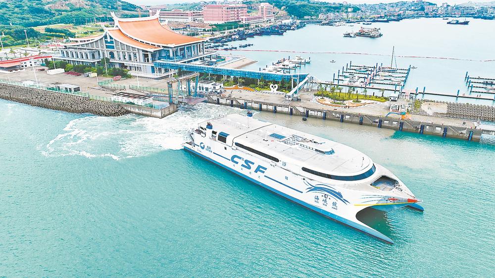 8月6日,在平潭澳前客运滚装码头,“海峡号”客滚轮运载2个集装箱缓缓驶离港口,这是该船时隔628天后再次穿越台湾海峡驶向台北港,标志着“海峡号”再度恢复两岸海上货物直航运输。据悉,自2011年首航以来,“海峡号”已累计运送旅客近100万人次,运载货物超3.8万吨,先后开通了平潭至台中、台北、高雄3条航线,辐射台湾北部、中部和南部。此次航线恢复后,预计每周执行一个往返航班。(张哲昊 江信恒 摄)