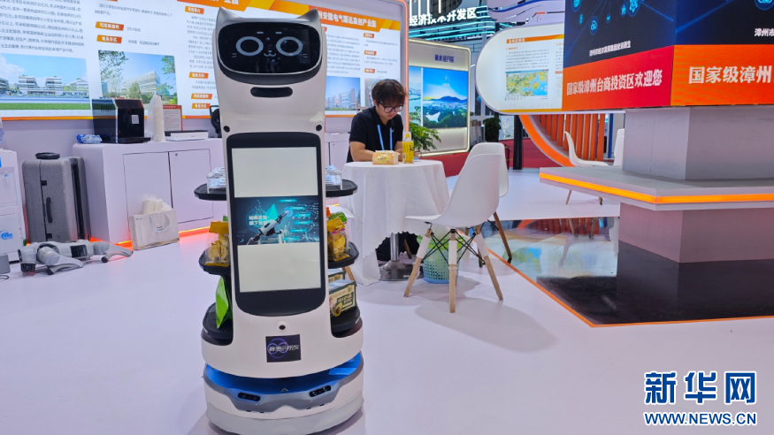 漳州台商投资区展台里的服务型机器人。新华网 刘默涵 摄
