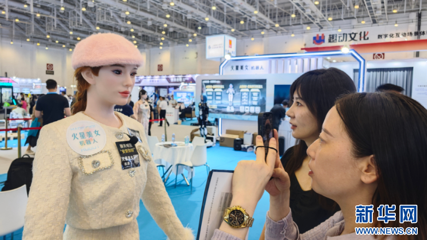 机器人与观众互动。新华网 刘默涵 摄