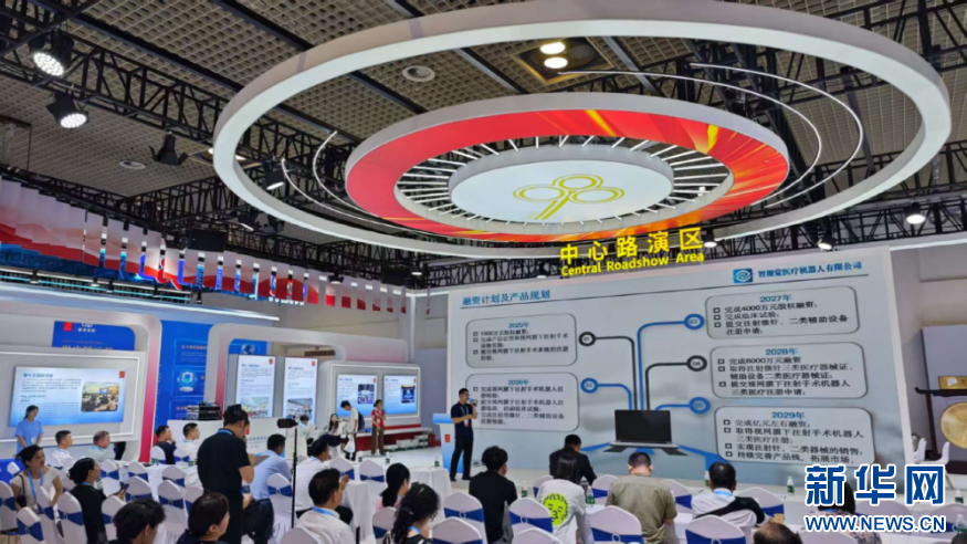 投洽会中心路演区,一名创业者携项目登台路演,争取投资者的青睐。新华网 刘默涵 摄