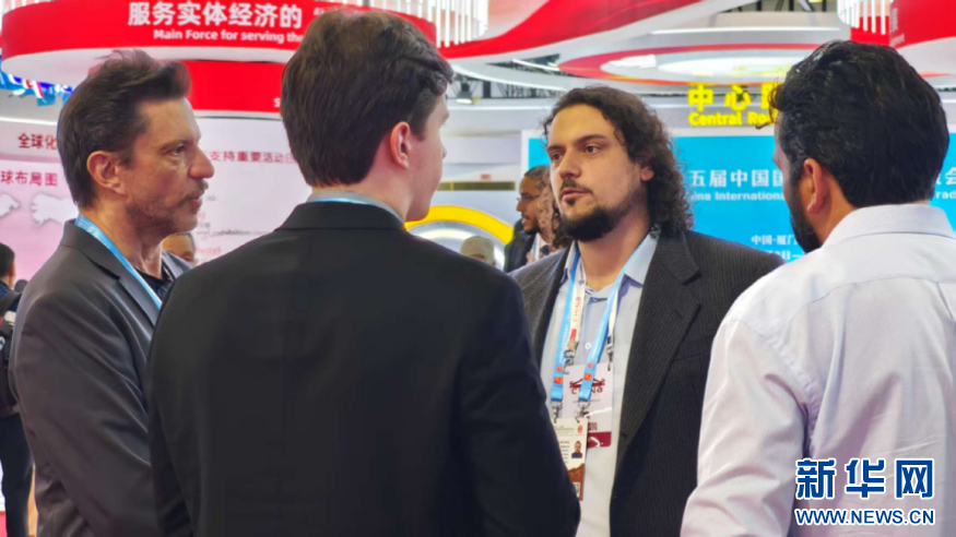 国际客商在展馆内交流。新华网 刘默涵 摄
