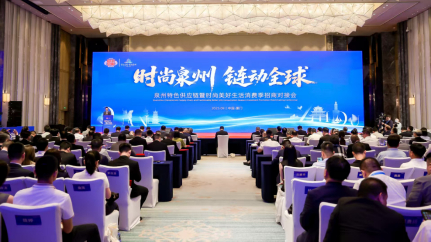 新华网福州9月9日电(刘默涵)9月8日下午,“时尚泉州 链动全球”泉州特色供应链暨时尚美好生活消费季招商对接会在福建省厦门市举行,来自18个国家和地区的180多位客商参会。