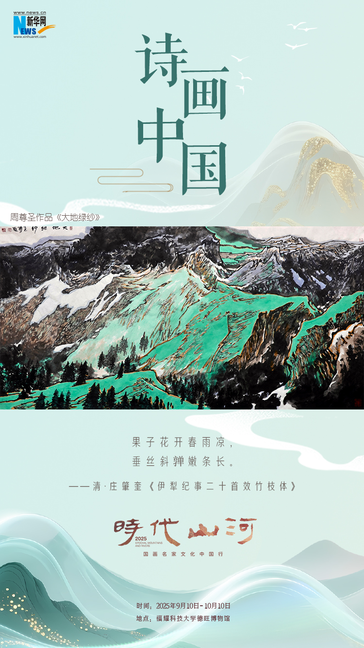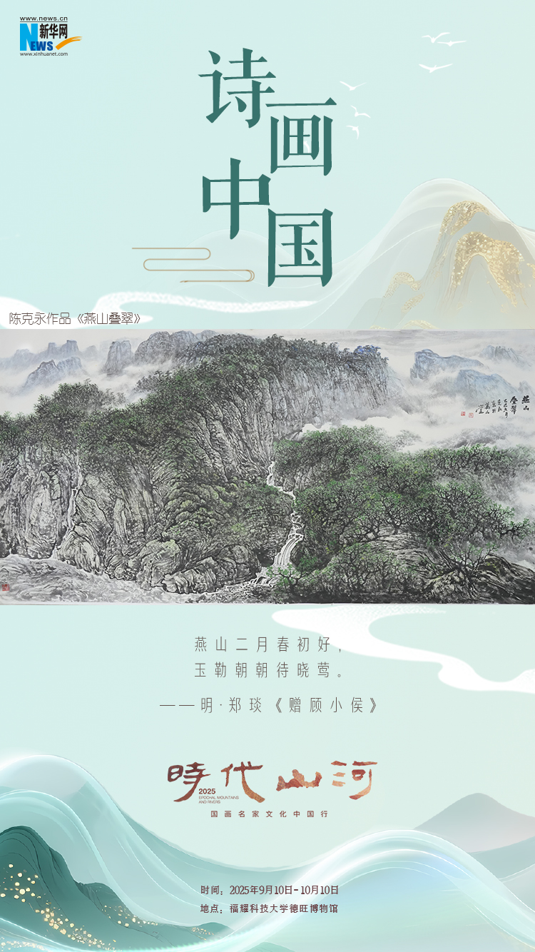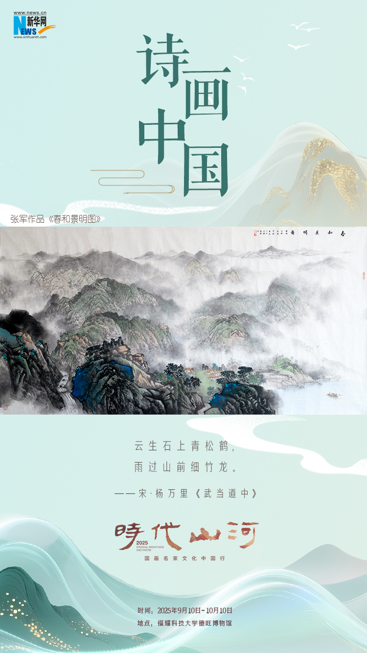 “建设文化强国 共绘时代新篇——国画名家文化中国行”发布会暨“时代山河”首期画展,10日在福耀科技大学开幕。现场共展出十位国内知名艺术家的113幅山水画作及书法作品。通过系列海报,一起“云逛画展”,感受山水诗境的无限意蕴。(陈丹)