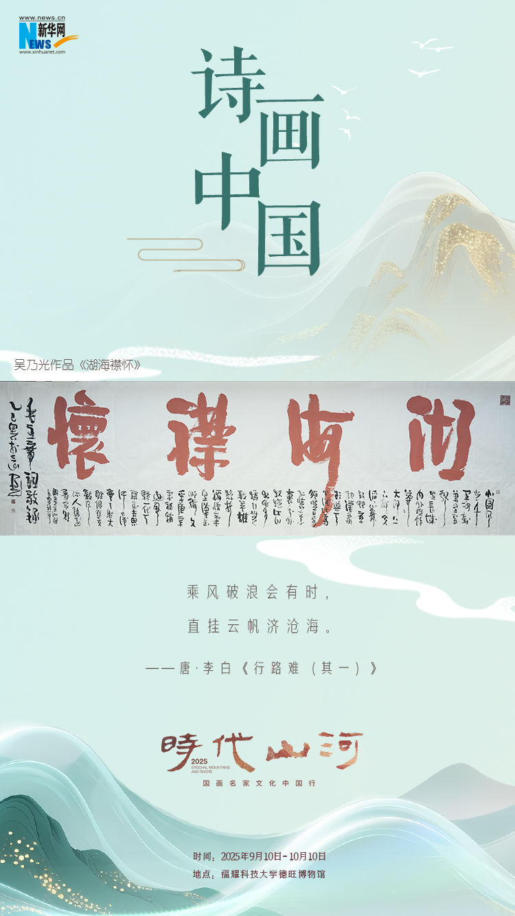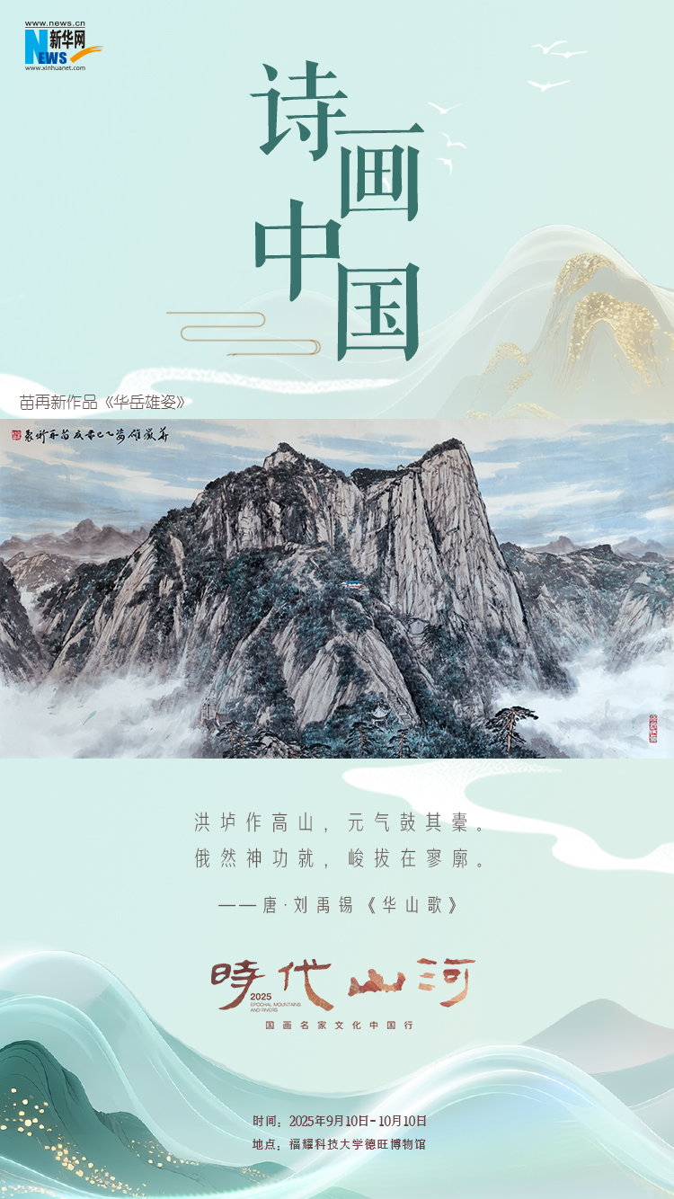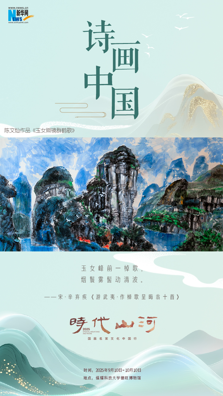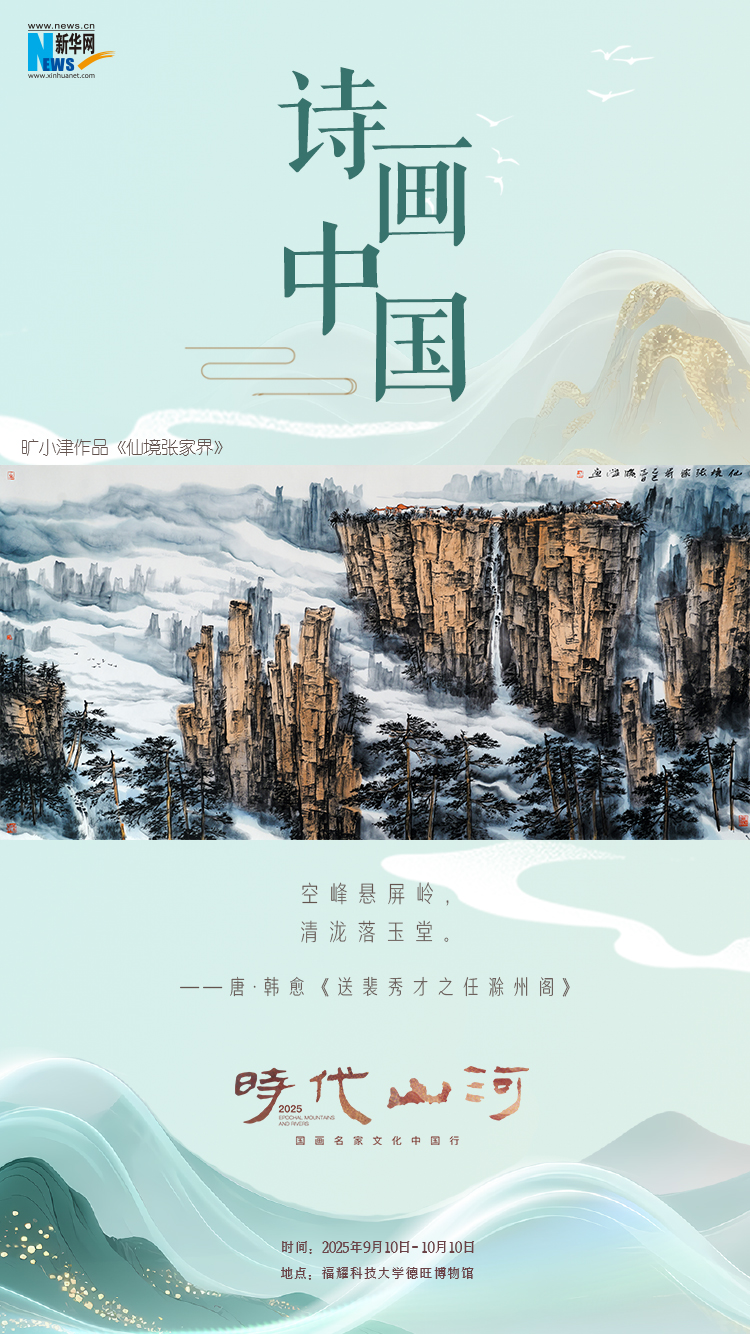 “建设文化强国 共绘时代新篇——国画名家文化中国行”发布会暨“时代山河”首期画展,10日在福耀科技大学开幕。现场共展出十位国内知名艺术家的113幅山水画作及书法作品。通过系列海报,一起“云逛画展”,感受山水诗境的无限意蕴。(陈丹)