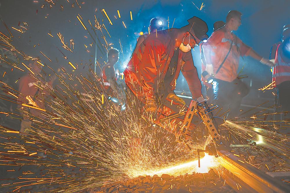 为了不影响高铁正常运行,整个换轨施工必须在“天窗”时间内完成。作业人员以5分钟为单位,对240分钟的“天窗”时间精准划分,各道工序环环相扣,充分运用焊轨车等机械化设备,提升整体施工和作业效率。凌晨5时许,经过焊接、打磨、探伤等一系列工序,轨距和水平等各项指标经检查全部符合验收标准,顺利完成800米换轨施工任务。这次机械化大修换轨施工后,将大大增加线路的平顺性和安全性。(记者 张颖 通讯员 郭延民 张萌飞 文/图)