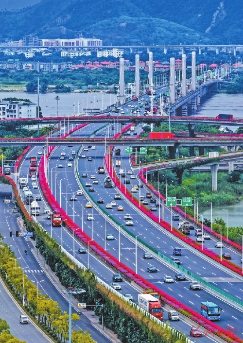 今年国庆假期,如果你乘坐滨海快线经过帝封江站,窗外的秋日风景不可错过。本周开始,紧挨该站点的螺洲互通高架桥上,双色三角梅花带上线,为进出城的市民带来高颜值的道路风景。