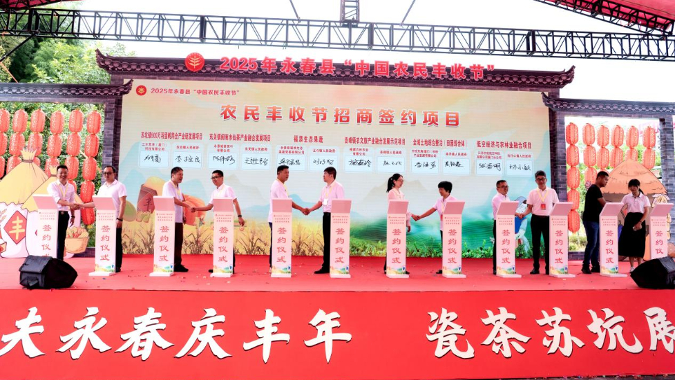 现场还举行永春县农业产业项目签约仪式,姜黄素提炼项目、鹌鹑养殖项目、光明村黄花菜基地建设项目等17个招商项目和永春县佛手茶碳中和生态开发和综合利用项目、校地合作项目等2个合作项目现场签约仪式,为永春县的农文旅发展注入强大动力。其中,佛手茶碳中和生态开发和综合利用项目是苏坑镇与福建农林大学安溪茶学院共同合作的茶产业项目,旨在推进佛手茶碳中和生态开发和综合利用,提升产业附加值,实现生态保护与经济效益双共赢。