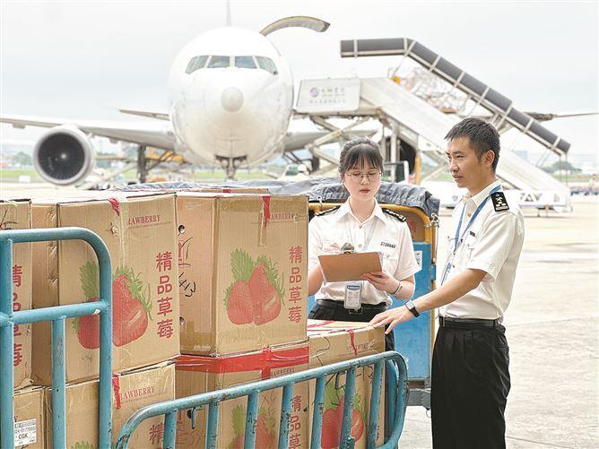 厦门机场海关监管采用“空空中转”抵港直装方式出口的商品。(通讯员 陈鸣耿 摄)