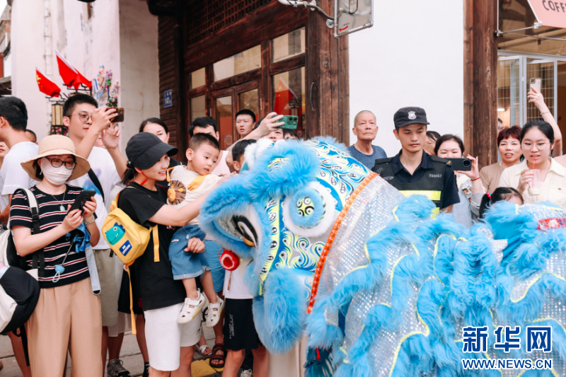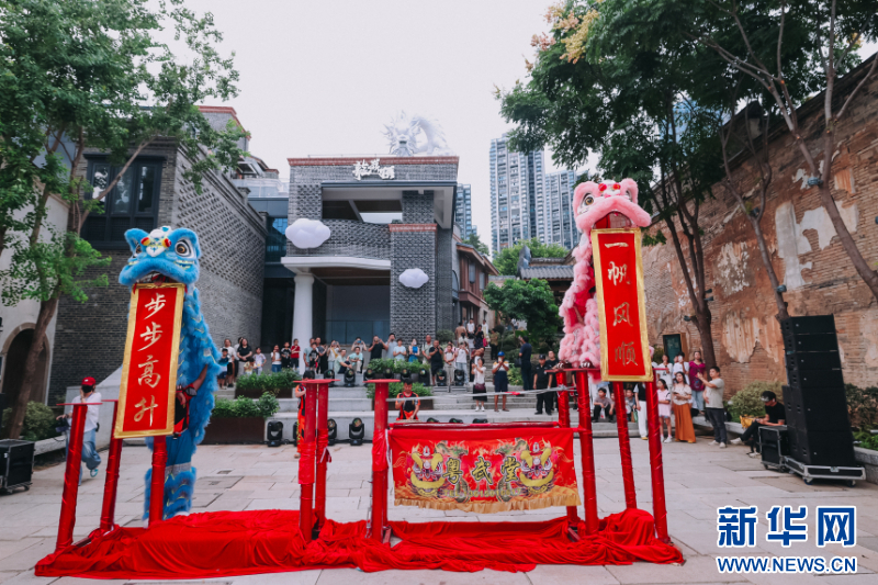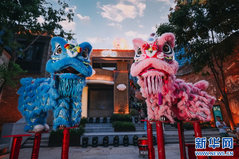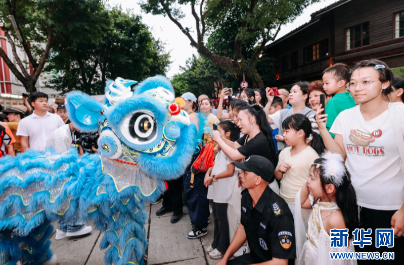 “国潮雄狮少年”展演在福州上下杭上演。新华网发(主办方供图)