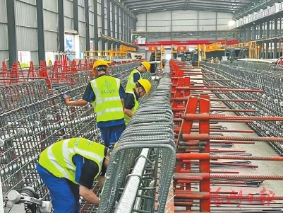 机场第二高速项目A5合同段智慧梁厂工人坚守一线。陈家琳 摄