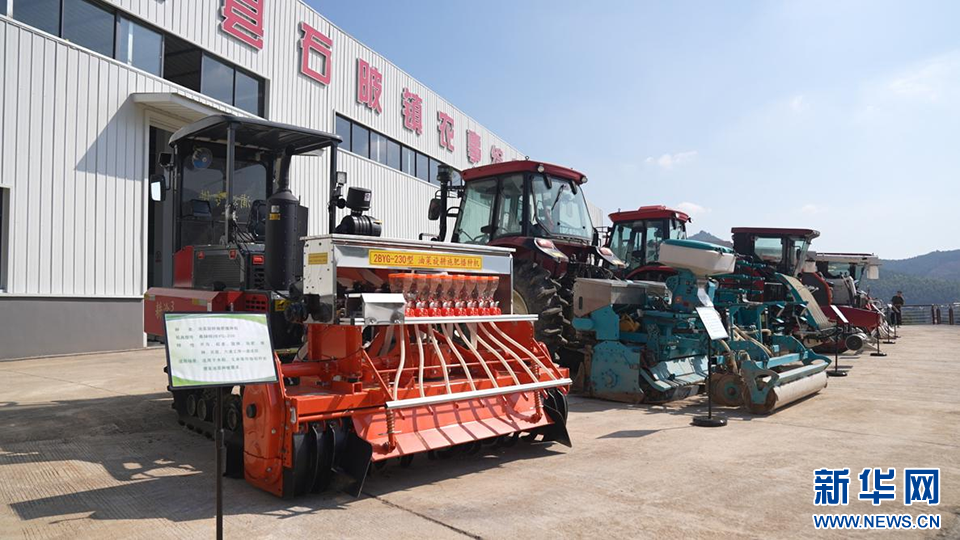 浦城县石陂镇农事综合服务中心内,多种大型农机具整齐排列。新华网 林晨 摄