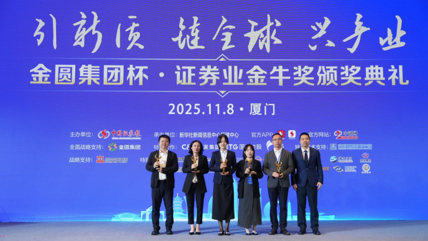 新华网福州11月8日电(刘默涵)11月8日,2025证券业高质量发展大会暨金圆集团杯·证券业金牛奖颁奖典礼在福建厦门举行。2025证券公司金牛奖、2025证券公司集合资管计划金牛奖获奖榜单正式揭晓。