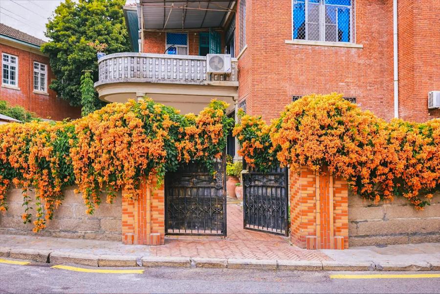 “华新路及周边共建有别墅30余栋,是上世纪五六十年代归国华侨打造的居住区,这里保留了较多的老洋房和红砖建筑,融合了闽南特色和南洋风格,充满了年代感和文艺气息。”溪岸社区网格员张铭恩介绍。